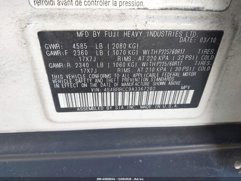 2010 SUBARU OUTBACK 3.6R LIMITED