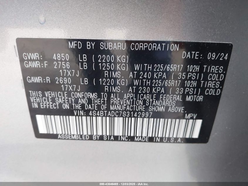 2025 SUBARU OUTBACK 2025 року Бензин, 2.5, Повний привід, vin - 4S4BTADC7S3142997 з США