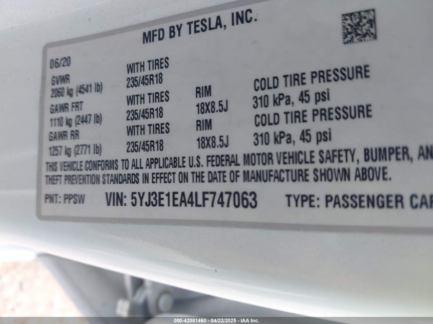 2020 TESLA MODEL 3