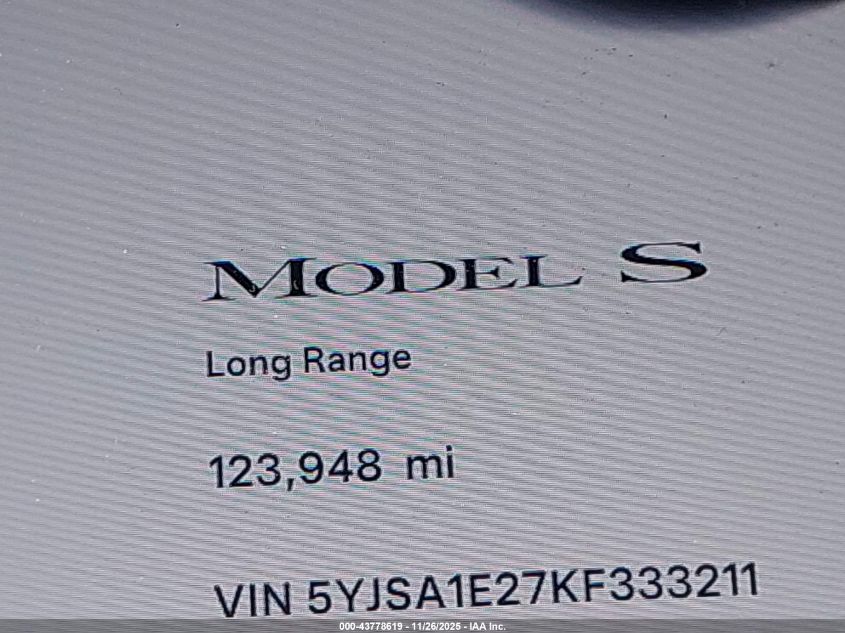 2019 TESLA MODEL S 2019 року Електричний, U, Повний привід, vin - 5YJSA1E27KF333211 з США