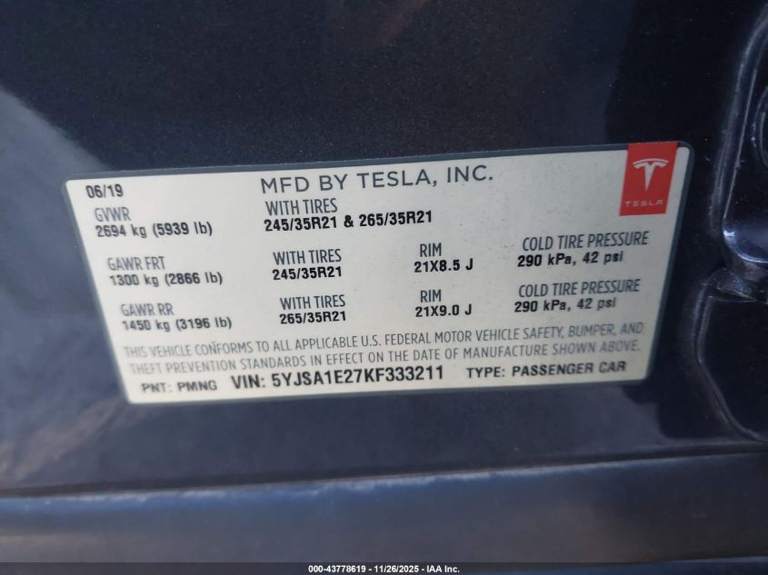 2019 TESLA MODEL S