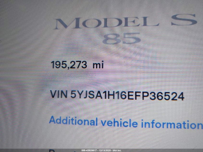 2014 TESLA MODEL S 2014 року Електричний, U, Задній привід, vin - 5YJSA1H16EFP36524 з США