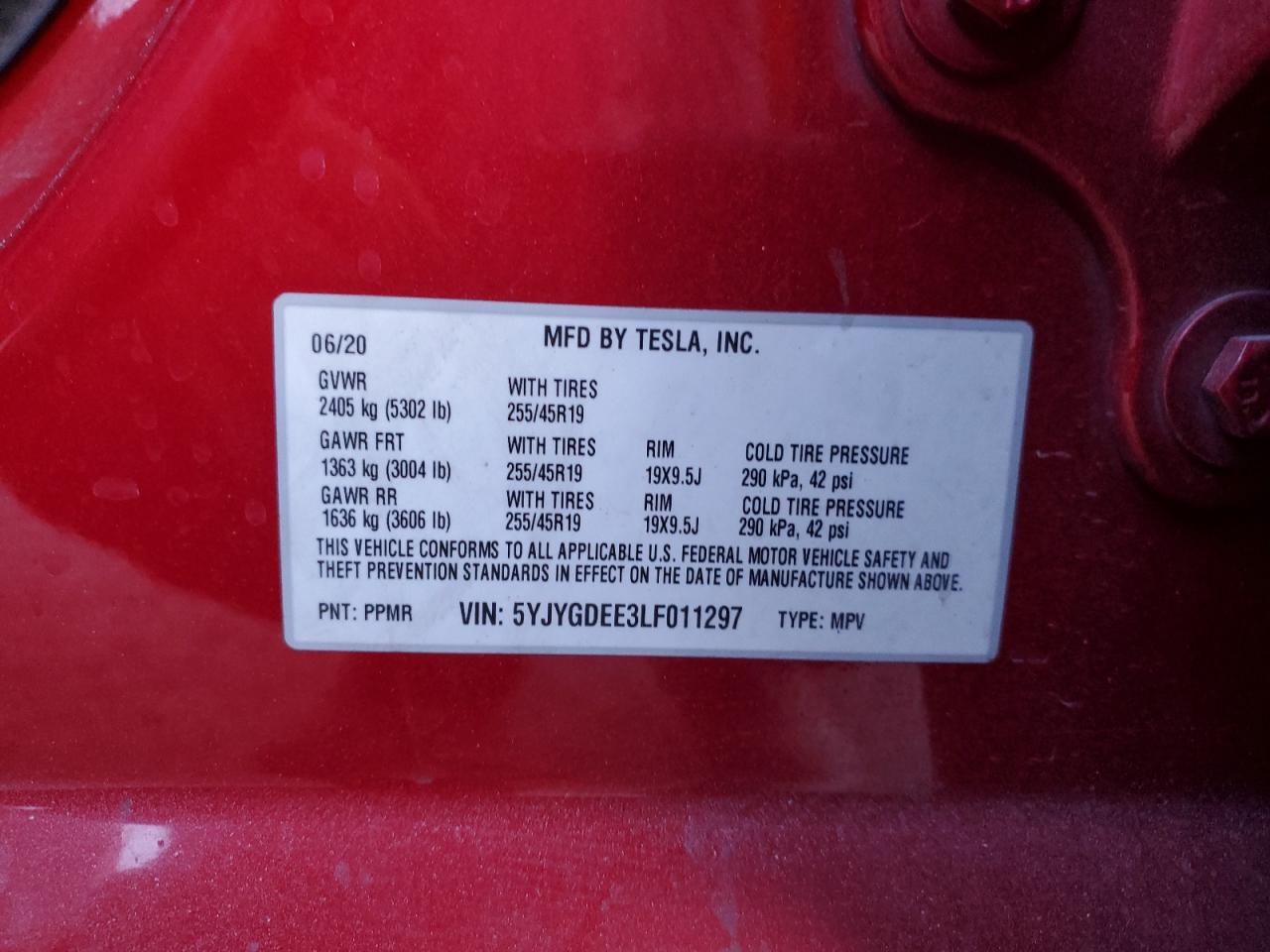 2020 TESLA MODEL Y 2020 року Електричний, , Повний привід, vin - 5YJYGDEE3LF011297 з США
