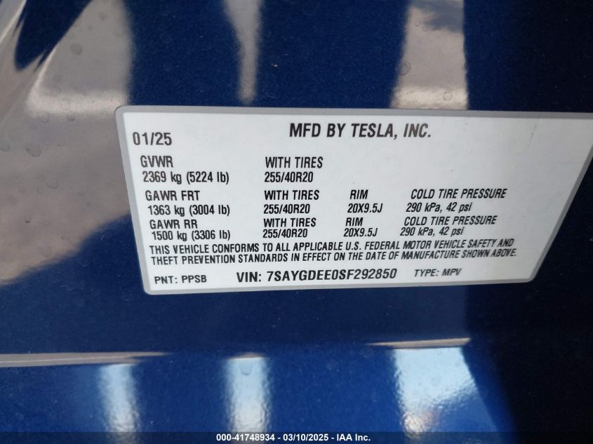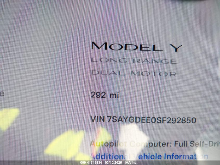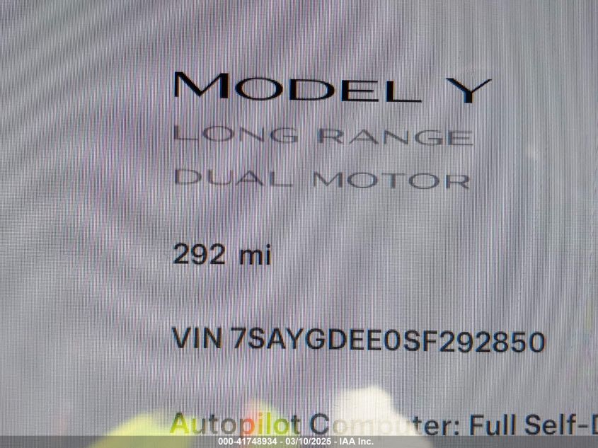2025 TESLA MODEL Y 2025 року Електричний, U, Повний привід, vin - 7SAYGDEE0SF****** з США