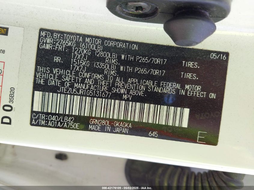 2016 TOYOTA 4RUNNER SR5