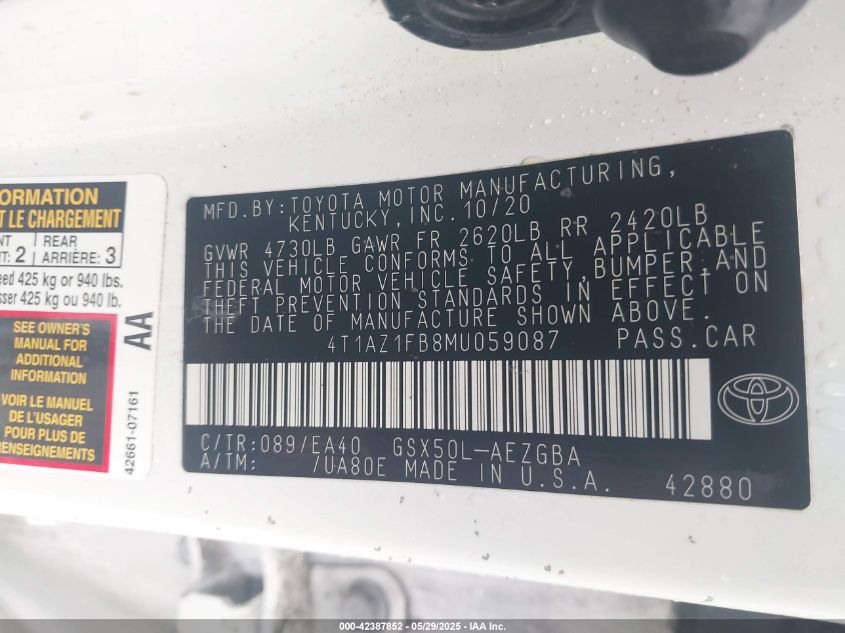 2021 TOYOTA AVALON 2021 року Бензин, 3.5, Передній привід, vin - 4T1AZ1FB8MU****** з США