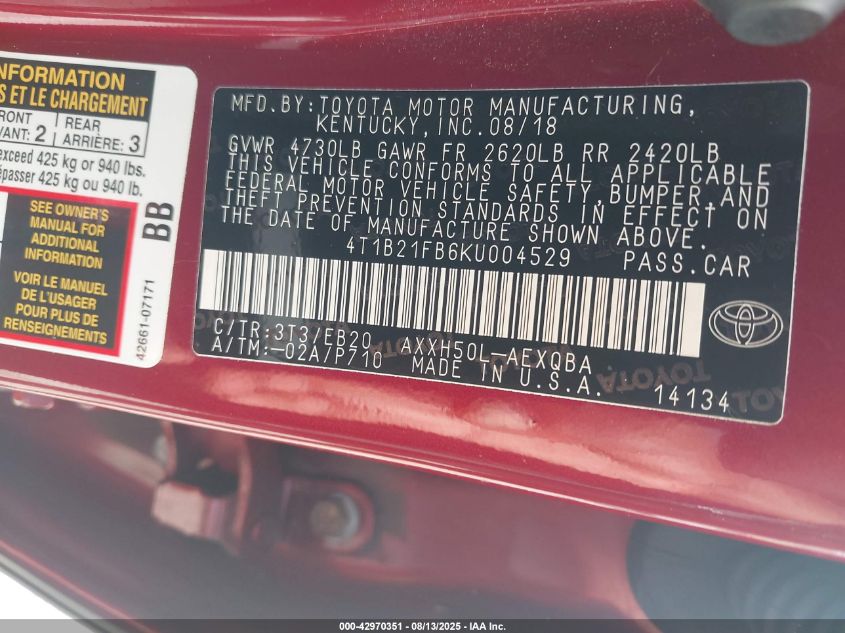 2019 TOYOTA AVALON 2019 року Гібрид, 2.5, Передній привід, vin - 4T1B21FB6KU****** з США