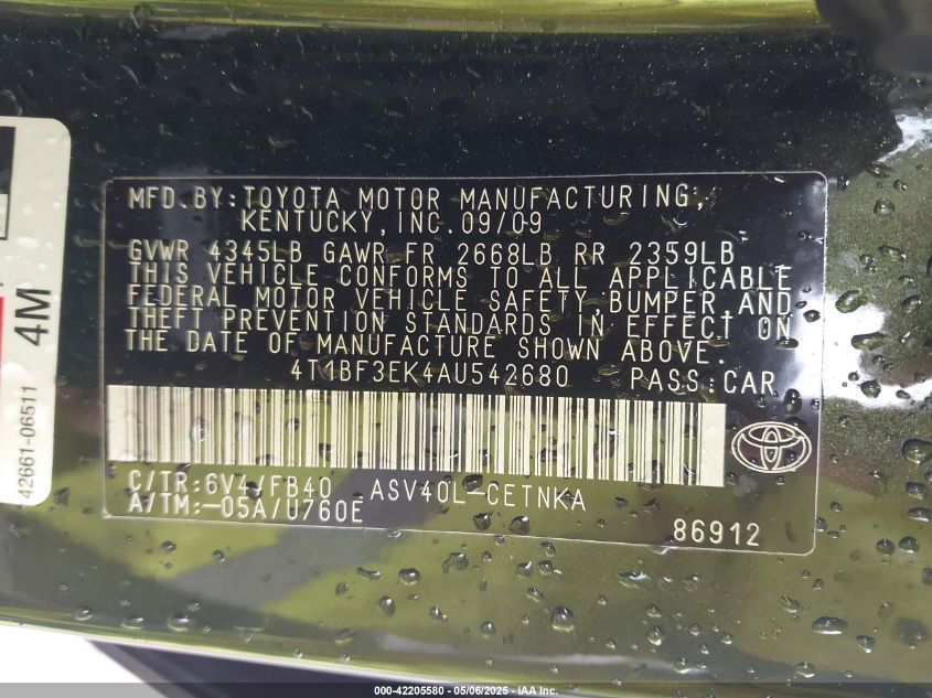 2010 TOYOTA CAMRY 2010 року Бензин, 2.5, Передній привід, vin - 4T1BF3EK4AU542680 з США