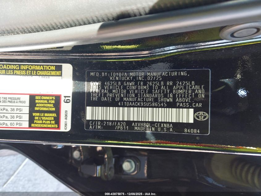 2025 TOYOTA CAMRY 2025 року Гібрид, 2.5, Передній привід, vin - 4T1DAACK9SU586545 з США