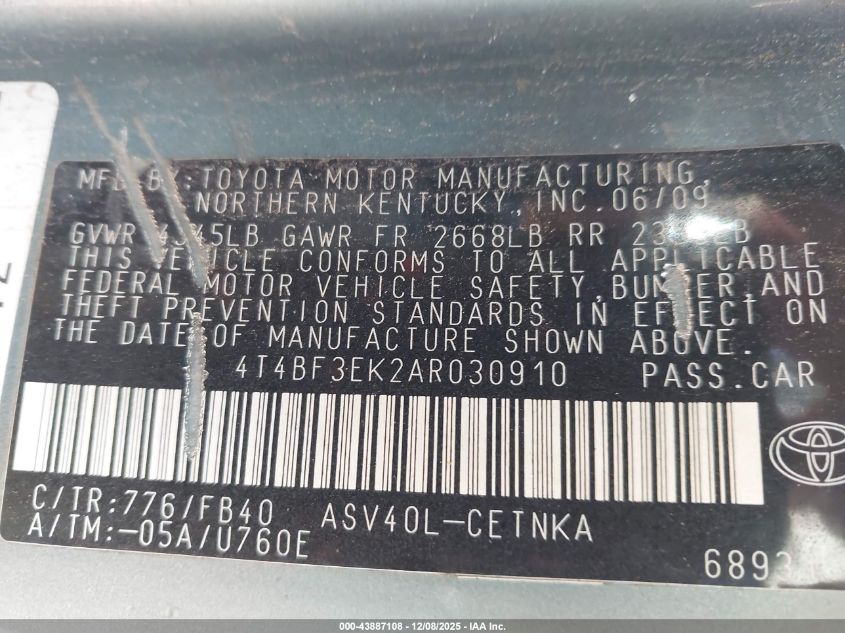 Колір ЗеленийЦиліндри 4Привід Передній привідVIN 4T4BF3EK2AR030910Стан СтаціонарноУшкодження З боків AutoRIA