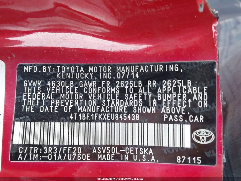 2014 TOYOTA CAMRY 2014 року Бензин, 2.5, Передній привід, vin - 4T1BF1FKXEU845438 з США