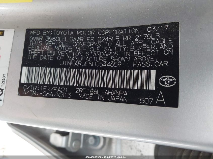 2017 TOYOTA COROLLA L