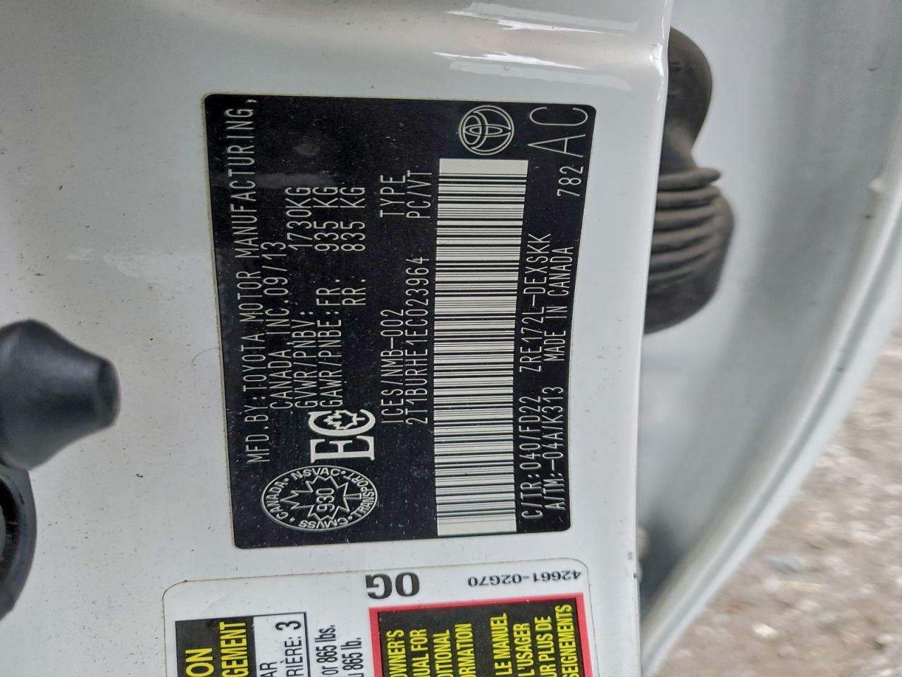 Колір БілийЦиліндри 4VIN 2T1BURHE1EC023964Стан Заводиться та їде (перевірено)Ушкодження Передня або задня AutoRIA