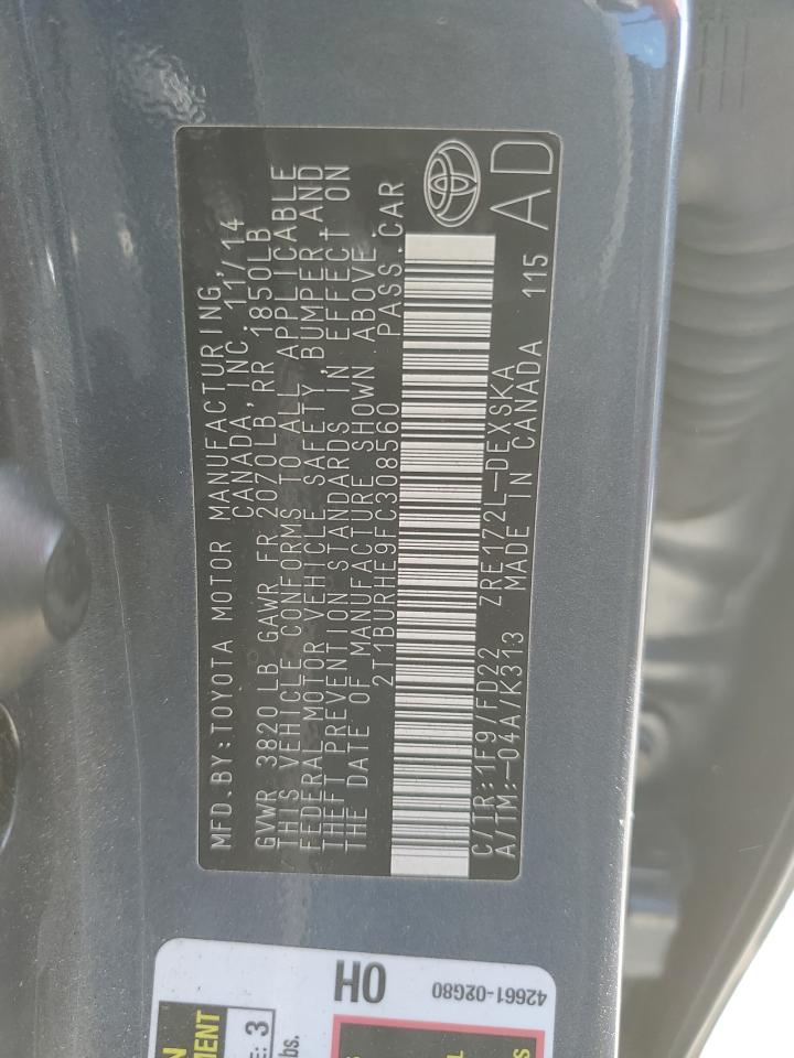 2015 TOYOTA COROLLA 2015 року Бензин, 1.8, , vin - 2T1BURHE9FC308560 з США