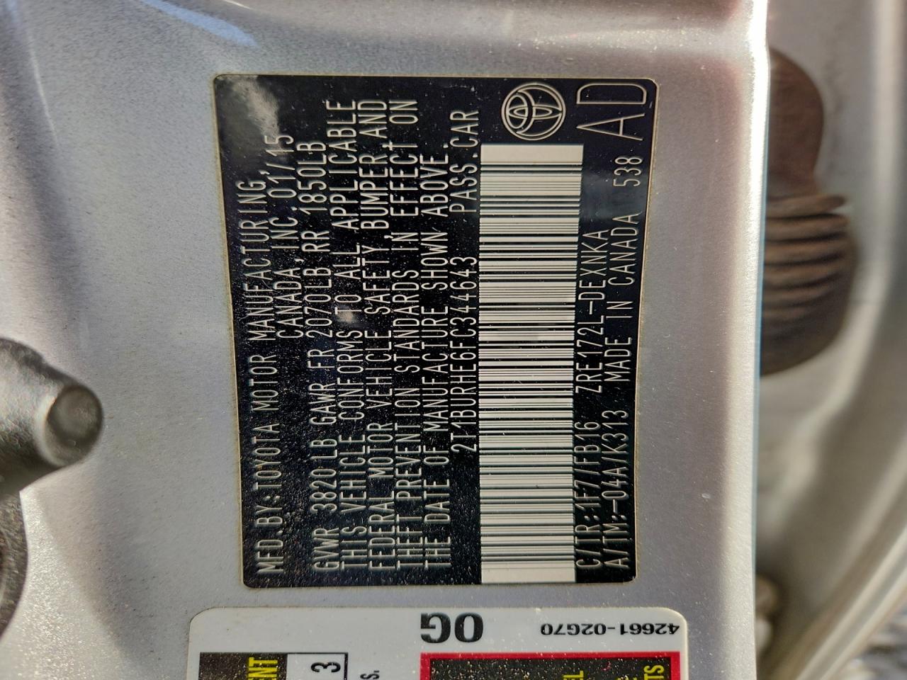 2015 TOYOTA COROLLA 2015 року Бензин, 1.8, , vin - 2T1BURHE6FC344643 з США