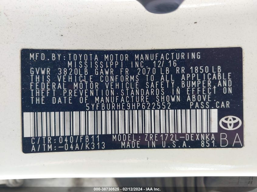 2017 TOYOTA COROLLA L