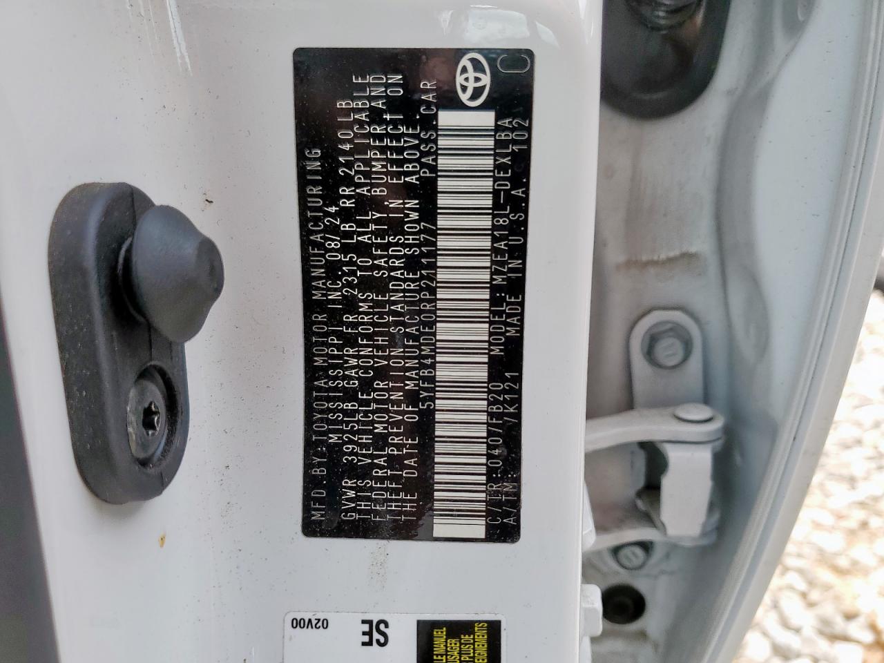 Колір БілийЦиліндри 4VIN 5YFB4MDE0RP211177Стан ЗаводитьсяУшкодження З боківДата аукціону 2025-07-01