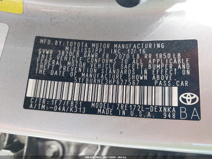 2017 TOYOTA COROLLA L