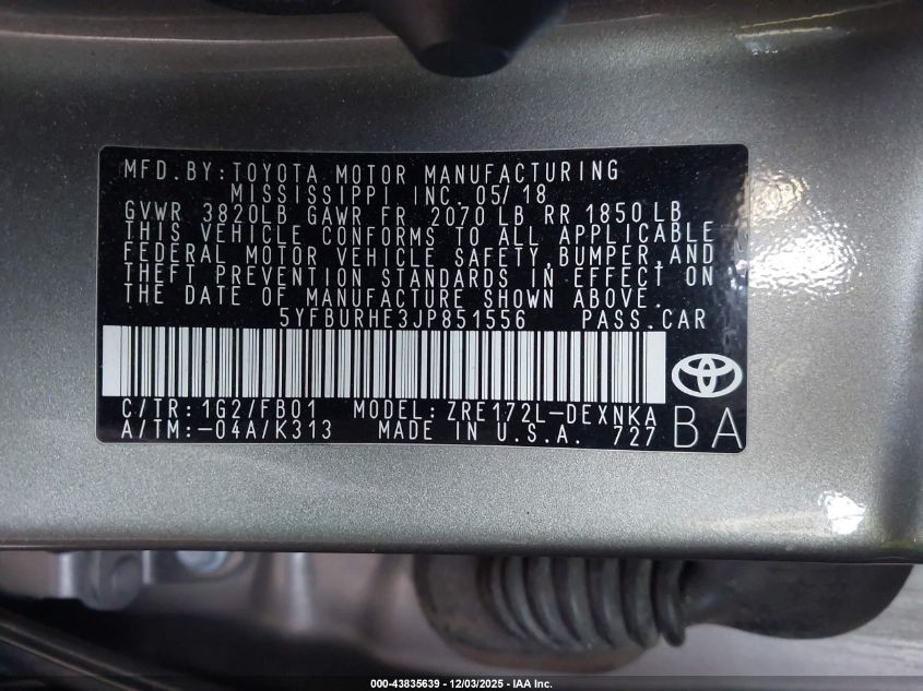 2018 TOYOTA COROLLA L
