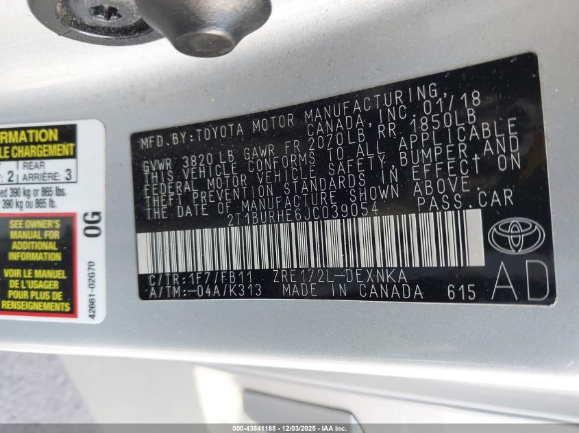 2018 TOYOTA COROLLA L