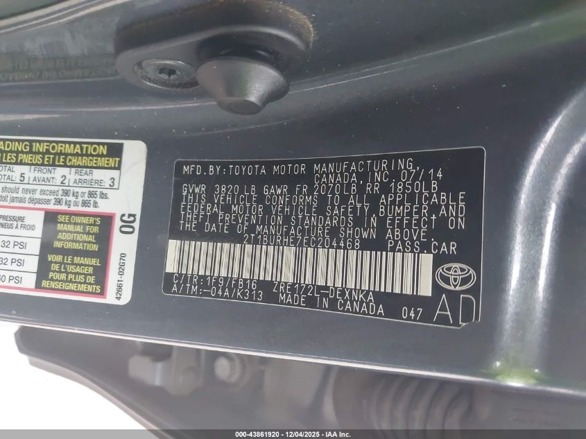 2014 TOYOTA COROLLA 2014 року Бензин, 1.8, Передній привід, vin - 2T1BURHE7EC204468 з США