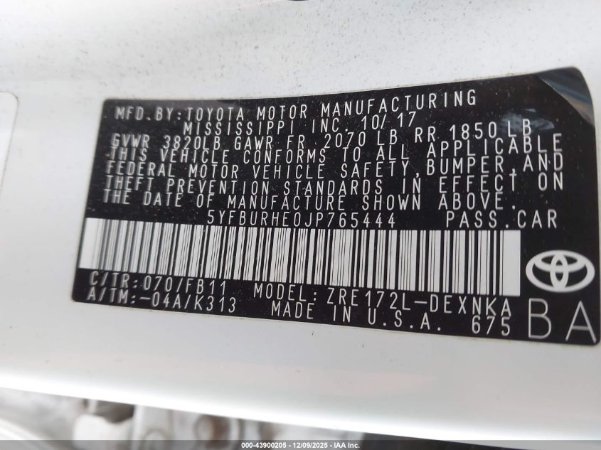 2018 TOYOTA COROLLA L