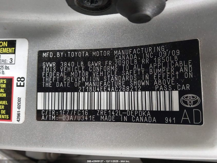 2010 TOYOTA COROLLA BASE