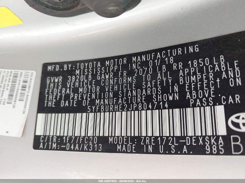 2018 TOYOTA COROLLA L