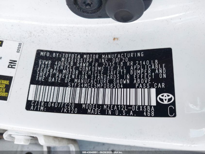 2021 TOYOTA COROLLA 2021 року Бензин, 2.0, Передній привід, vin - 5YFS4MCE5MP066504 з США