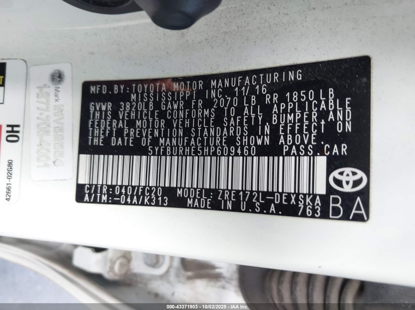 2017 TOYOTA COROLLA L