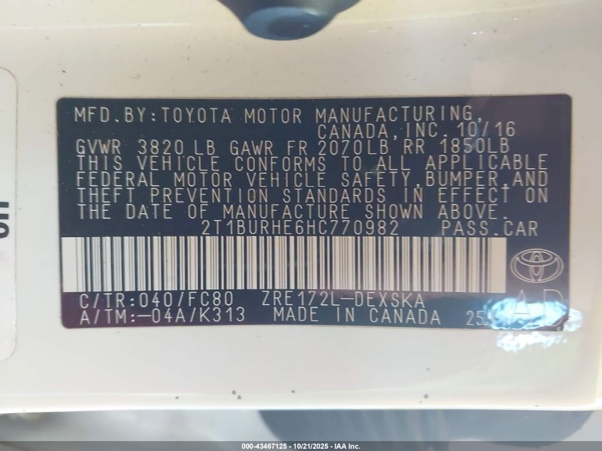 2017 TOYOTA COROLLA L