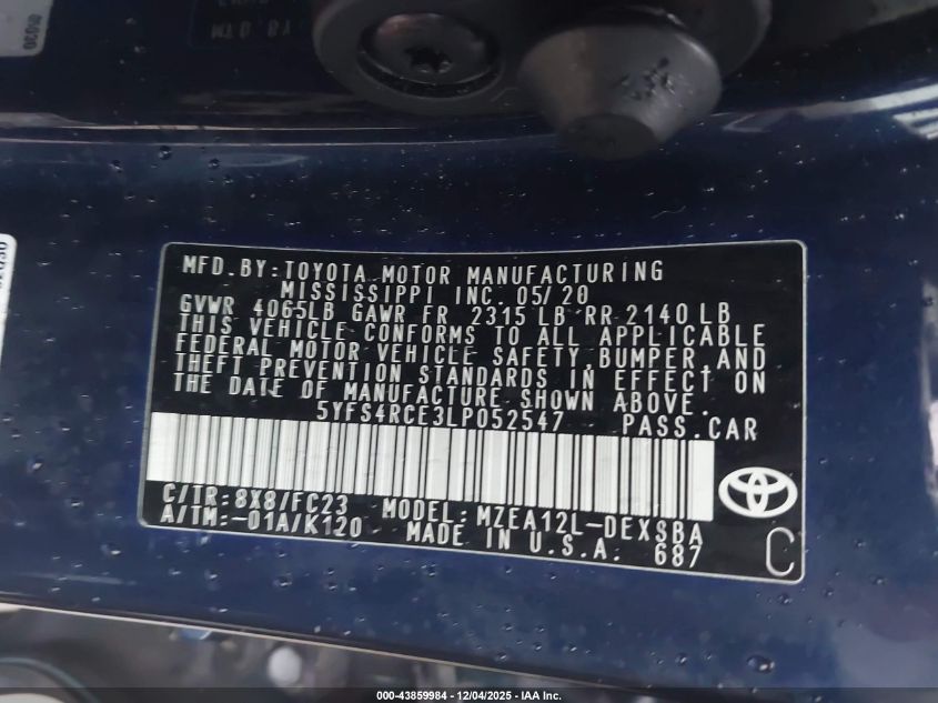 2020 TOYOTA COROLLA 2020 року Бензин, 2.0, Передній привід, vin - 5YFS4RCE3LP052547 з США