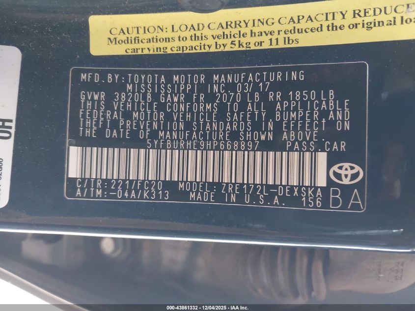 2017 TOYOTA COROLLA L