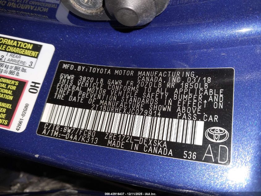 2018 TOYOTA COROLLA L