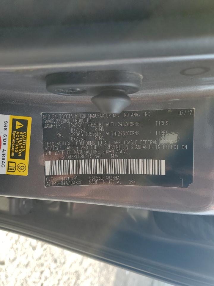2017 TOYOTA HIGHLANDER 2017 року Бензин, 3.5, Повний привід, vin - 5TDBZRFH8HS455140 з США