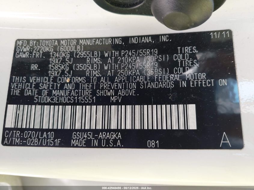 2012 TOYOTA HIGHLANDER LIMITED