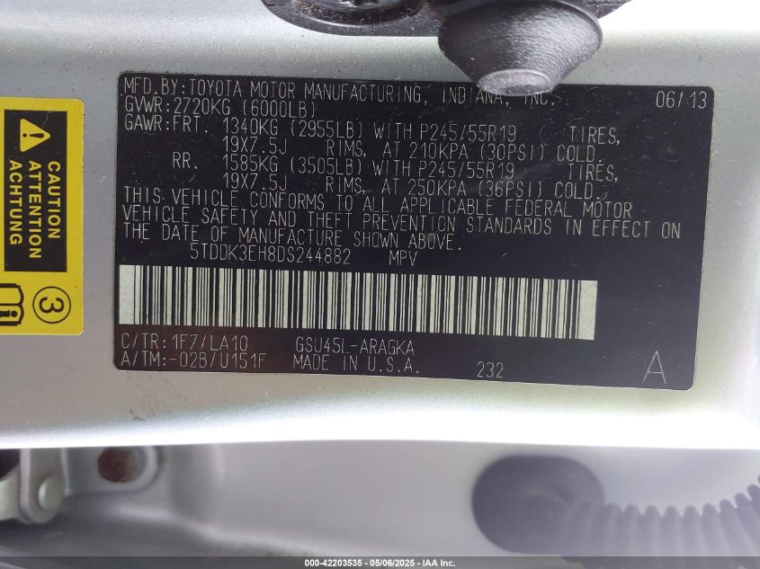 2013 TOYOTA HIGHLANDER 2013 року Бензин, 3.5, Повний привід, vin - 5TDDK3EH8DS****** з США