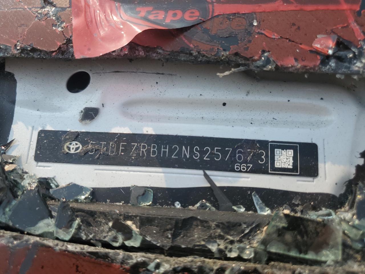 Колір БілийЦиліндри 6Привід Повний привідVIN 5TDFZRBH2NS257673Стан Заводиться та їде (перевірено)Ушкодження ВандалізмДата аукціону 2025-09-03