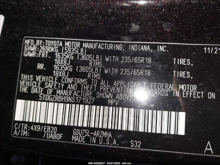 Колір ЧорнийЦиліндри 6Привід Повний привідVIN 5TDGZRBH9NS171927Стан Заводиться та їде (перевірено)Ушкодження Передня праваДата аукціону 2025-10-29