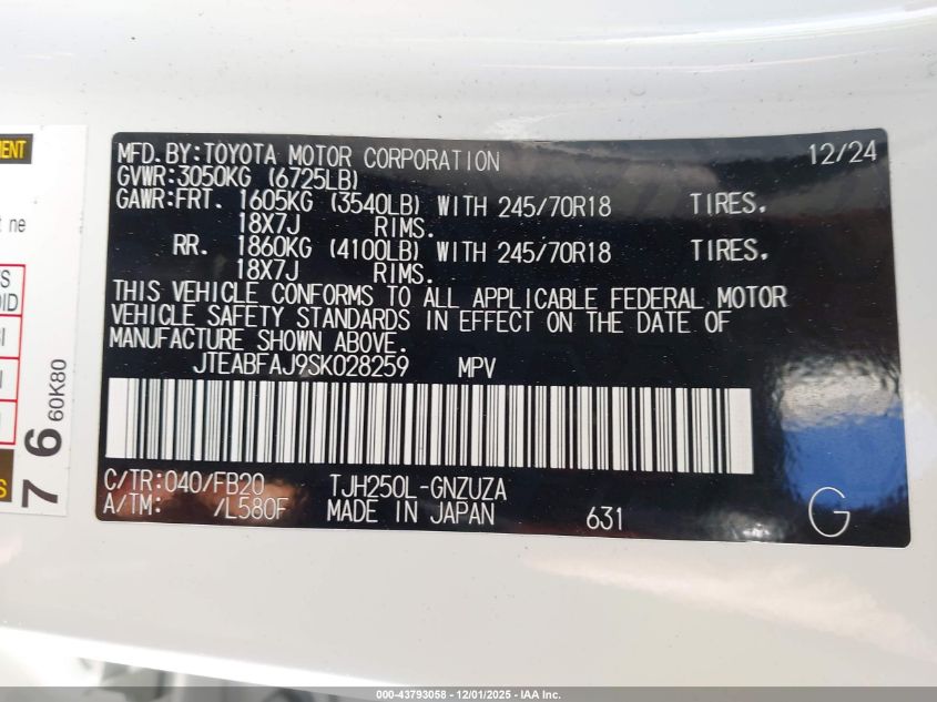 2025 TOYOTA LAND CRUISER 2025 року Гібрид, 2.4, Повний привід, vin - JTEABFAJ9SK028259 з США