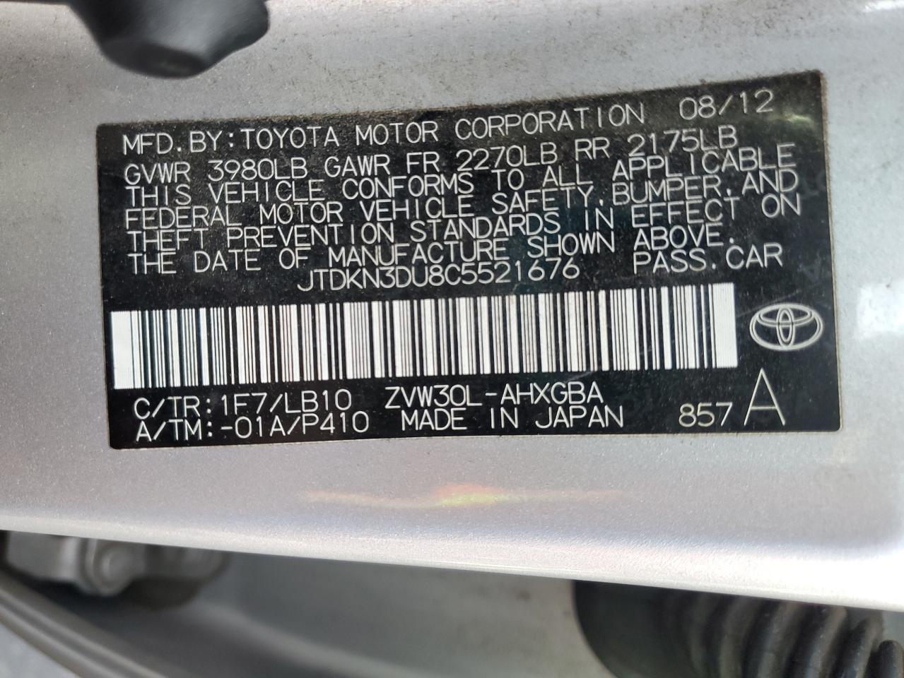 Колір СрібнийЦиліндри 4VIN JTDKN3DU8C5521676Стан Заводиться та їде (перевірено)Ушкодження Звичайний зносДата аукціону 2025-12-05 AutoRIA