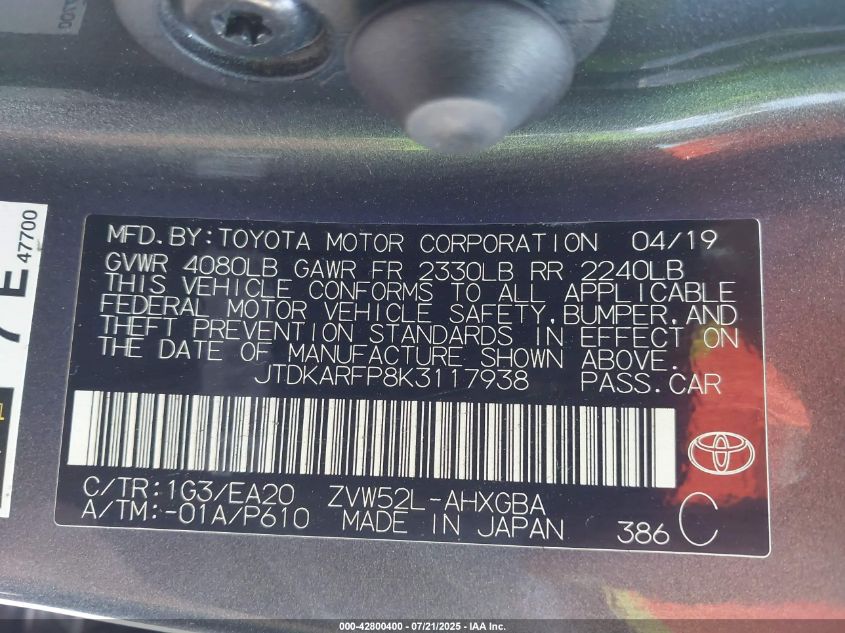 2019 TOYOTA PRIUS PRIME PRIUS PRIM