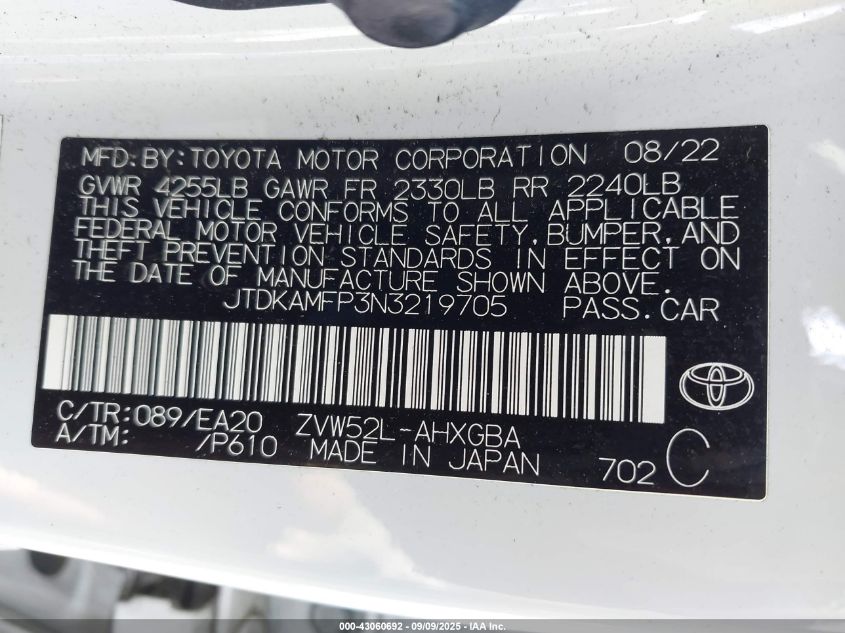 Колір БілийЦиліндри 4Привід Передній привідVIN JTDKAMFP3N3219705Стан Заводиться та їде (перевірено)Ушкодження Передня або задняДата аукціону 2025-10-28