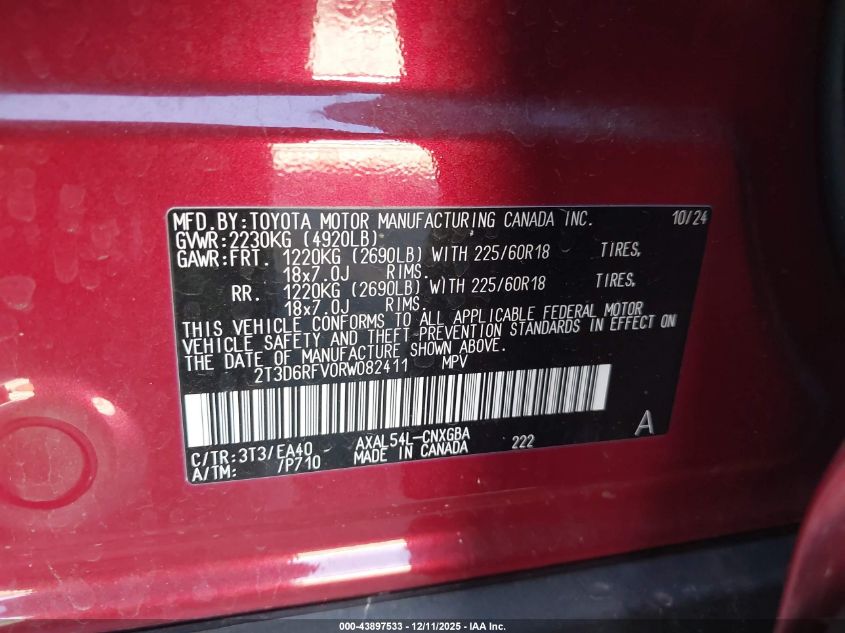 2024 TOYOTA RAV4 HYBRID 2024 року Гібрид, 2.5, Повний привід, vin - 2T3D6RFV0RW082411 з США