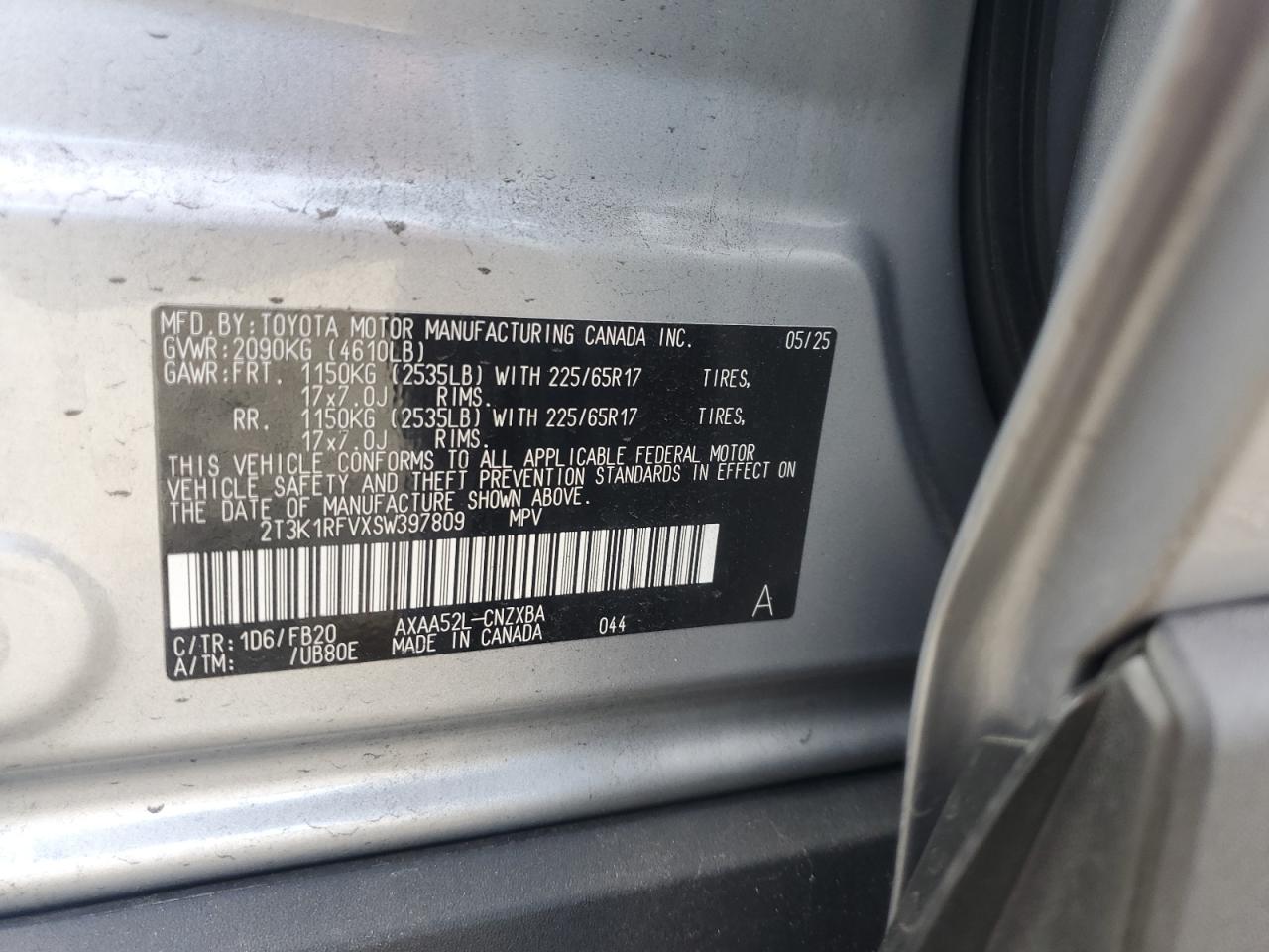2025 TOYOTA RAV4 2025 року Бензин, 2.5, , vin - 2T3K1RFVXSW397809 з США