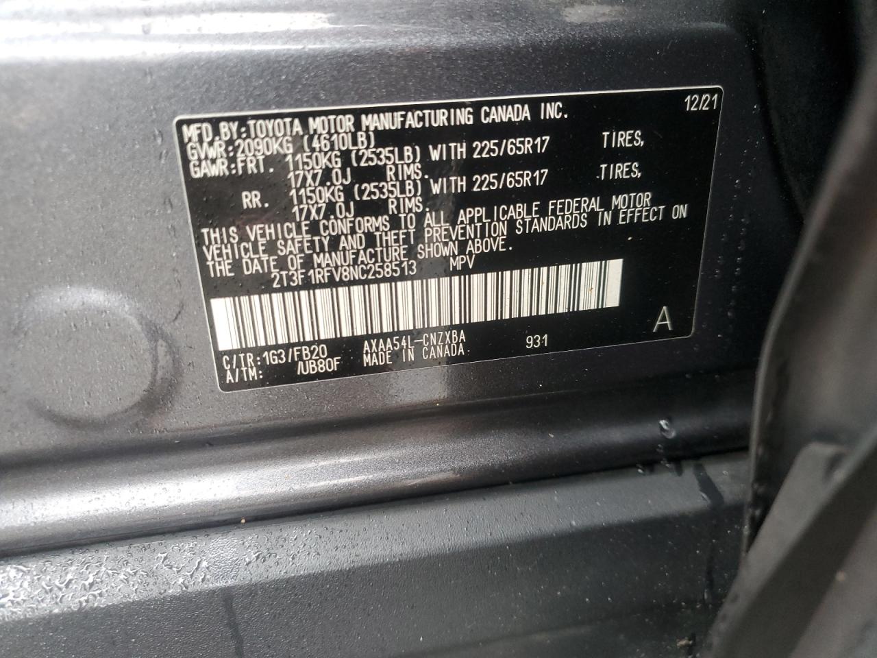 2022 TOYOTA RAV4 2022 року Бензин, 2.5, Повний привід, vin - 2T3F1RFV8NC258513 з США