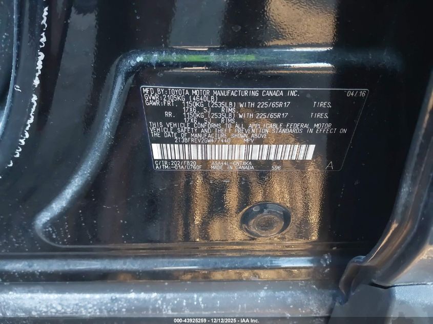 2016 TOYOTA RAV4 2016 року Бензин, 2.5, Повний привід, vin - 2T3BFREV2GW477440 з США