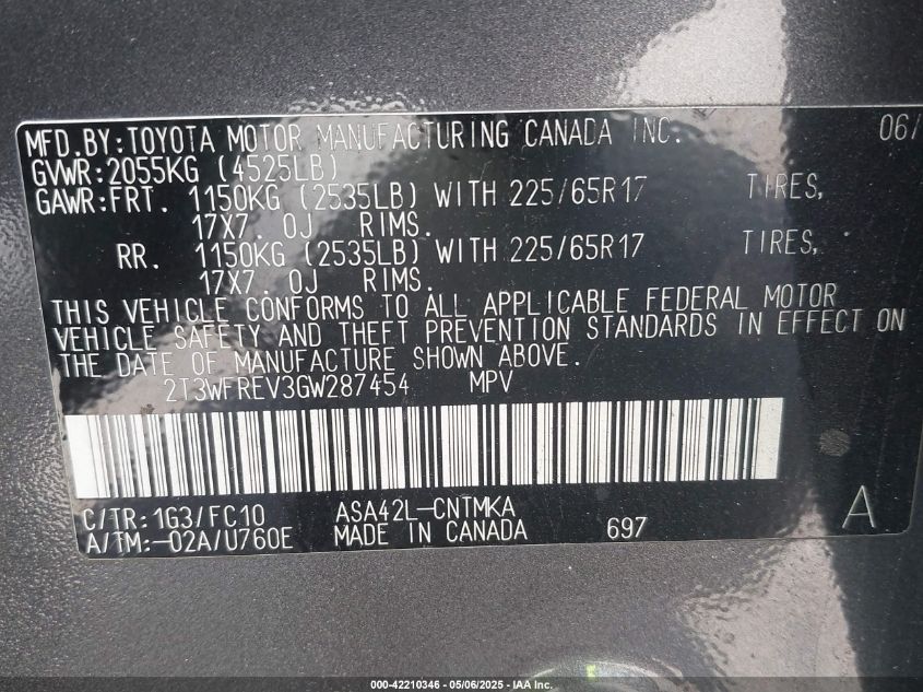 2016 TOYOTA RAV4 2016 року Бензин, 2.5, Передній привід, vin - 2T3WFREV3GW****** з США
