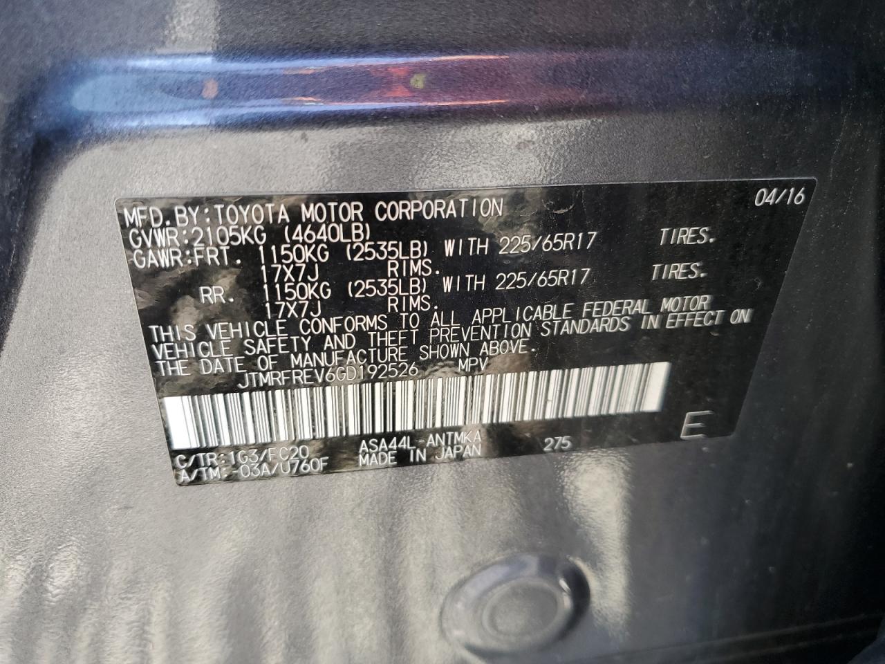 Колір СірийЦиліндри 4Привід Повний привідVIN JTMRFREV6GD192526Стан Заводиться та їде (перевірено)Ушкодження Передня або задня AutoRIA