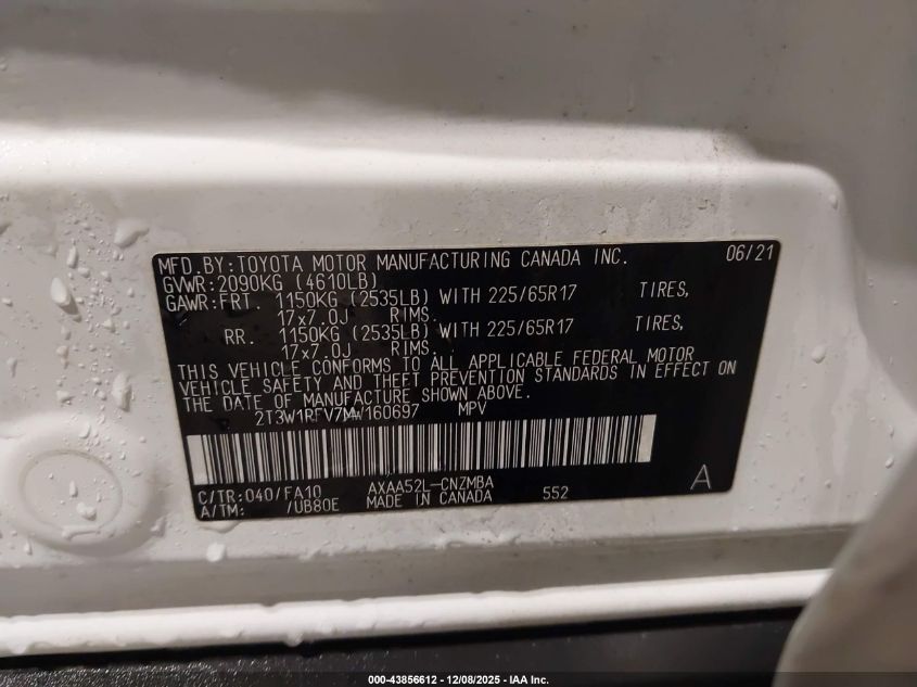 2021 TOYOTA RAV4 2021 року Бензин, 2.5, Передній привід, vin - 2T3W1RFV7MW160697 з США